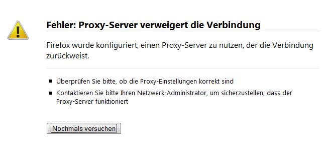 Kann es mit dem Proxy in irgendeinerweise zusammen liegen? Denn wenn ich den Internetexplorer ausprobieren möchte, bekomm ich ebenso eine Fehlermeldung.