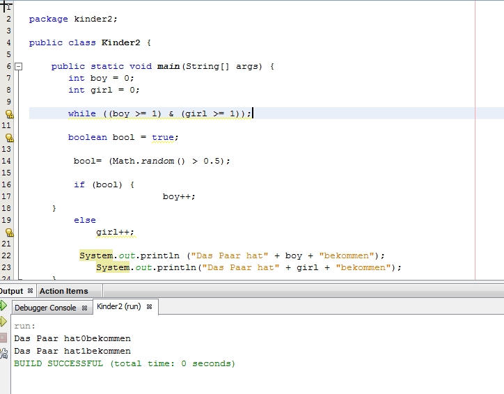 Bei meiner ersten Lösung gibt er als Ergebnis immer die 0 an.
