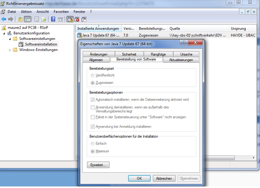 Ebenso ist das Paket am Netzlaufwerk wo die Benutzer (keine Adminrechte) Modifiyrechte haben