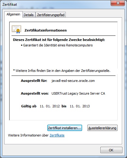 Das Zertifikat habe ich als Scrennshot im Anhang beigefügt.