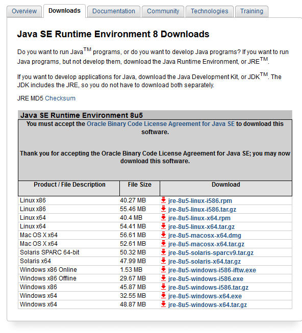 auf der offiziellen Seite gibts das JRE 8 Update 5 in 32 und 64 Bit