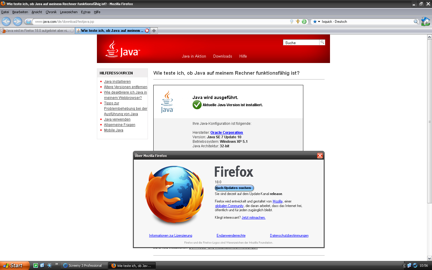 Unter Firefox > Add-Ons > Plugins ist Java aktiviert, anders als hier (fand ich über die Forensuche), wo es nichtmal aufgelistet ist.