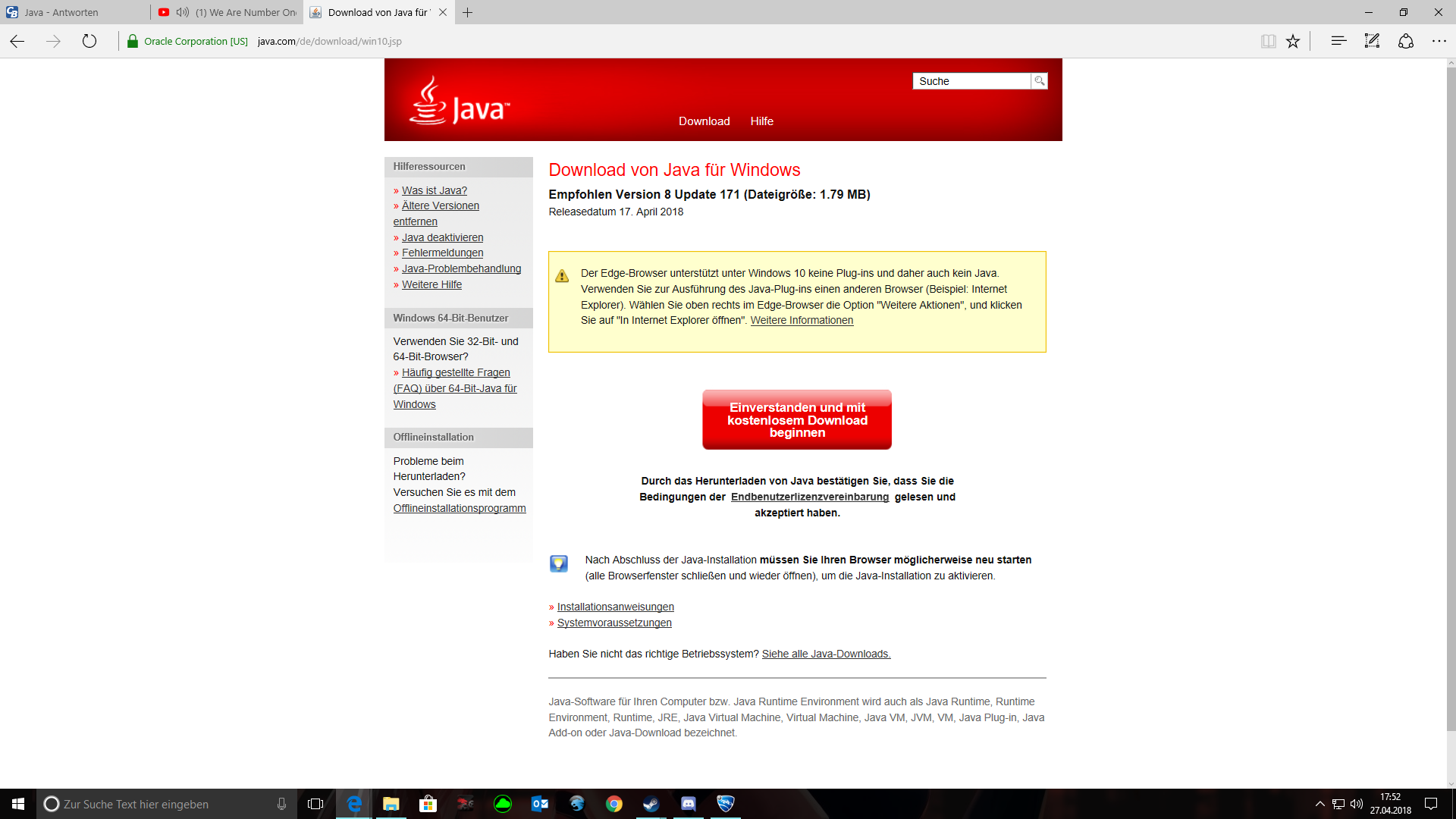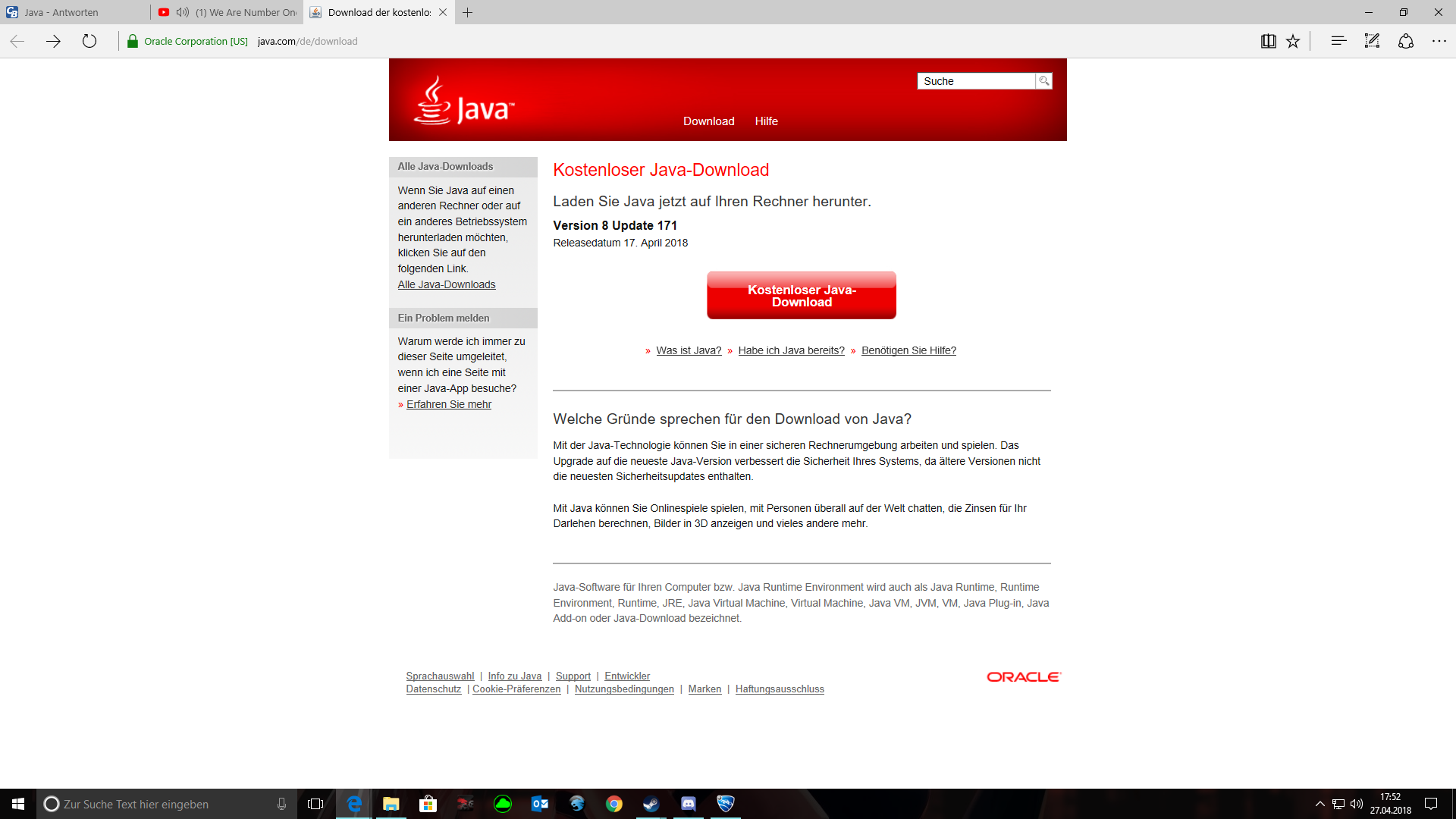 und zwar wollte ich die Technicklauncher.exe Datei öffnen und dann kam eine Meldung(siehe Anhang). Dann bin ich auf OK und dann hat sich diese Seite (Siehe Anhang) geöffnet. Dann hab ich auf Einverstanden geklickt und dann ist noch so ne Meldung gekommen. Ich wollte fragen, ob ich das einfach so downloaden kann und ob Java Version 8 etwas kostet.