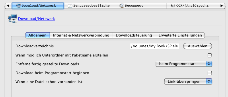 Kann ich die Downloads über den JDownloader unter OSX auf eine externe Platte laufen lassen !?