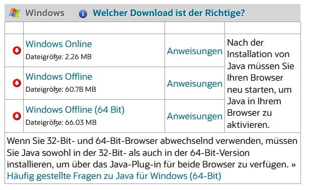 Da mir der Fehlertext nichts sagt und eine Übersetzung über Deppel nicht möglich ist, habe ich als erstes ein Java-Update gemacht: Java Seite