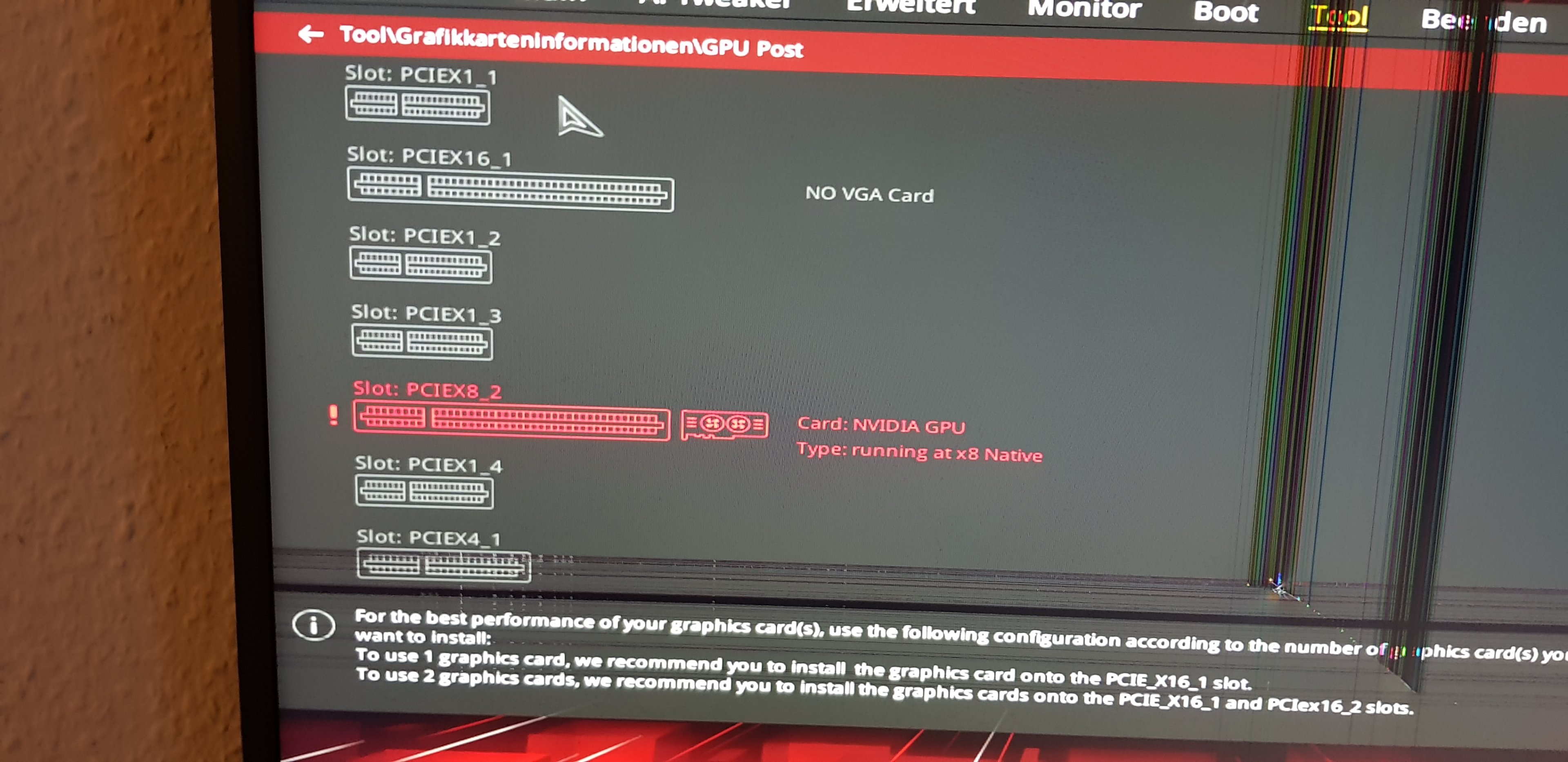 Ok da siehst du doch Slot: PCIEX8_2 da die Grafikkarte einbauen. Ansonsten , so trauen würde ich dem BIOS da nicht so.