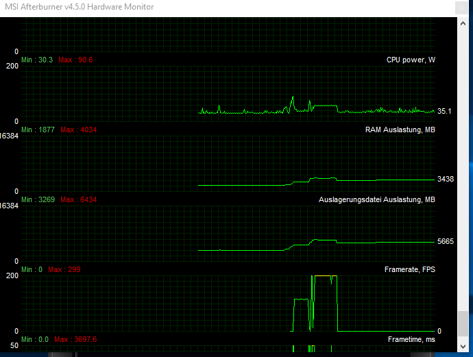 Bilder haben leider wenig aussagekraft, wobei man schon erkennt, dass die frametimes nach oben gehen, aber was die ursache dafür ist, erkennt man auf diesen Bildern leider nicht.
