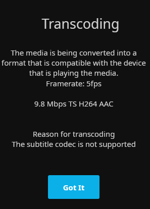 Großartig konfiguriert habe ich Jellyfin nicht. Ich habe gerade gesehen, dass es in den Einstellungen einen "Transcoding" Bereich gibt, bei dem man Hardwarebeschleunigung einstellen kann. Ich wüsste allerdings nicht, was ich da auswählen sollte und ob meine Hardware das überhaupt hergibt: