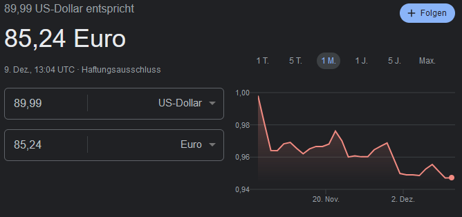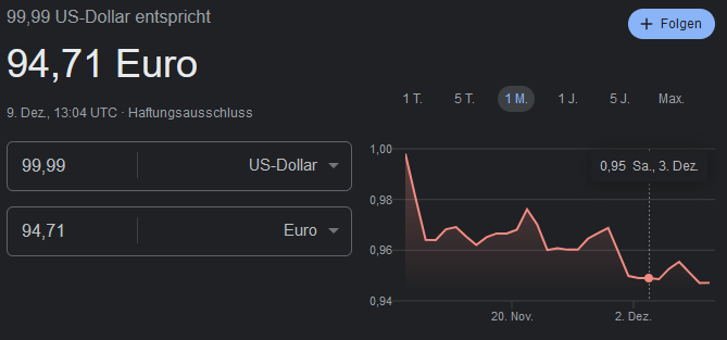 Na und was fehlt da? richtig, die mwst die bei den Dollar Preisen nie vorhanden sind
