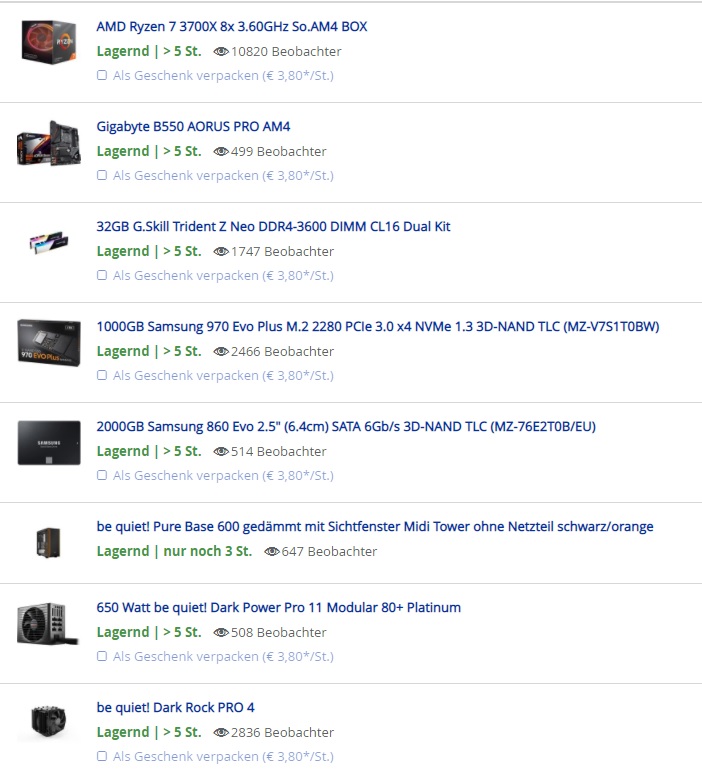 Den G.Skill Speicher hab ich reinkonfiguriert weil es bei mindfactory (steht nicht fest, dass ich dort kaufe) derzeit das einzige 32GB 2er Kit 3600 mit CL16 ist.
