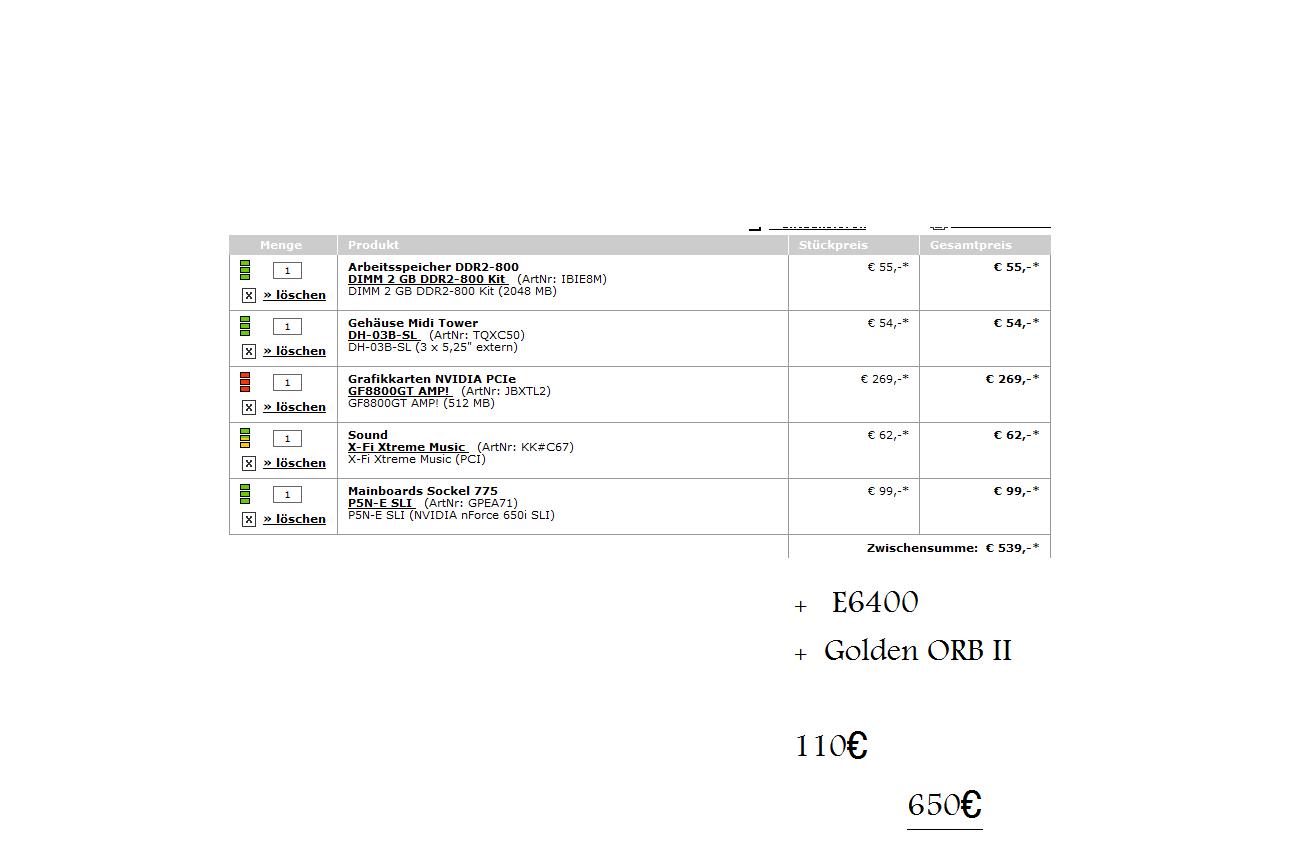 Also wollte meinen E6400 sammt lüfter verkaufen. würde noch 110 für kriegen bei nem freund. Dann wollt ich mir nen Q6600 mit nem INfinity hohln...