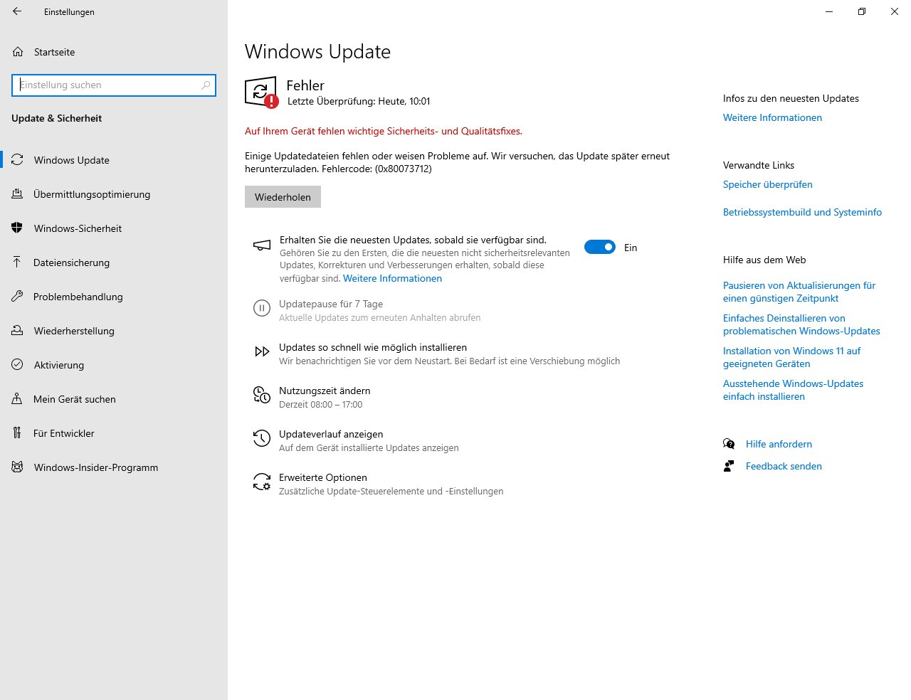ich habe ein Problem mit der Update-Registrierung bei Windows 10 Prof.