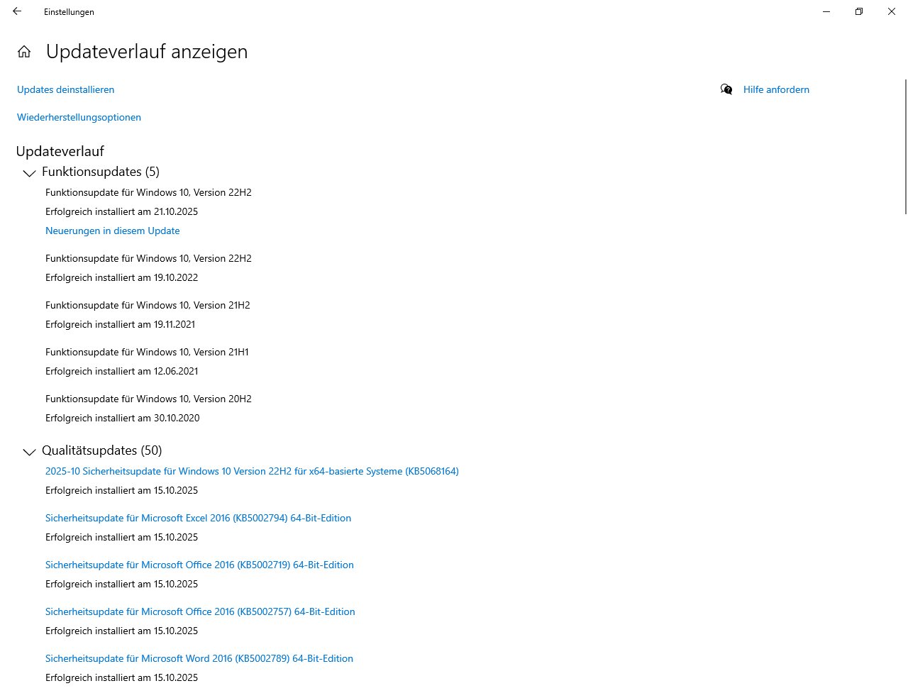 Das Update Version 22H2 ist installiert.