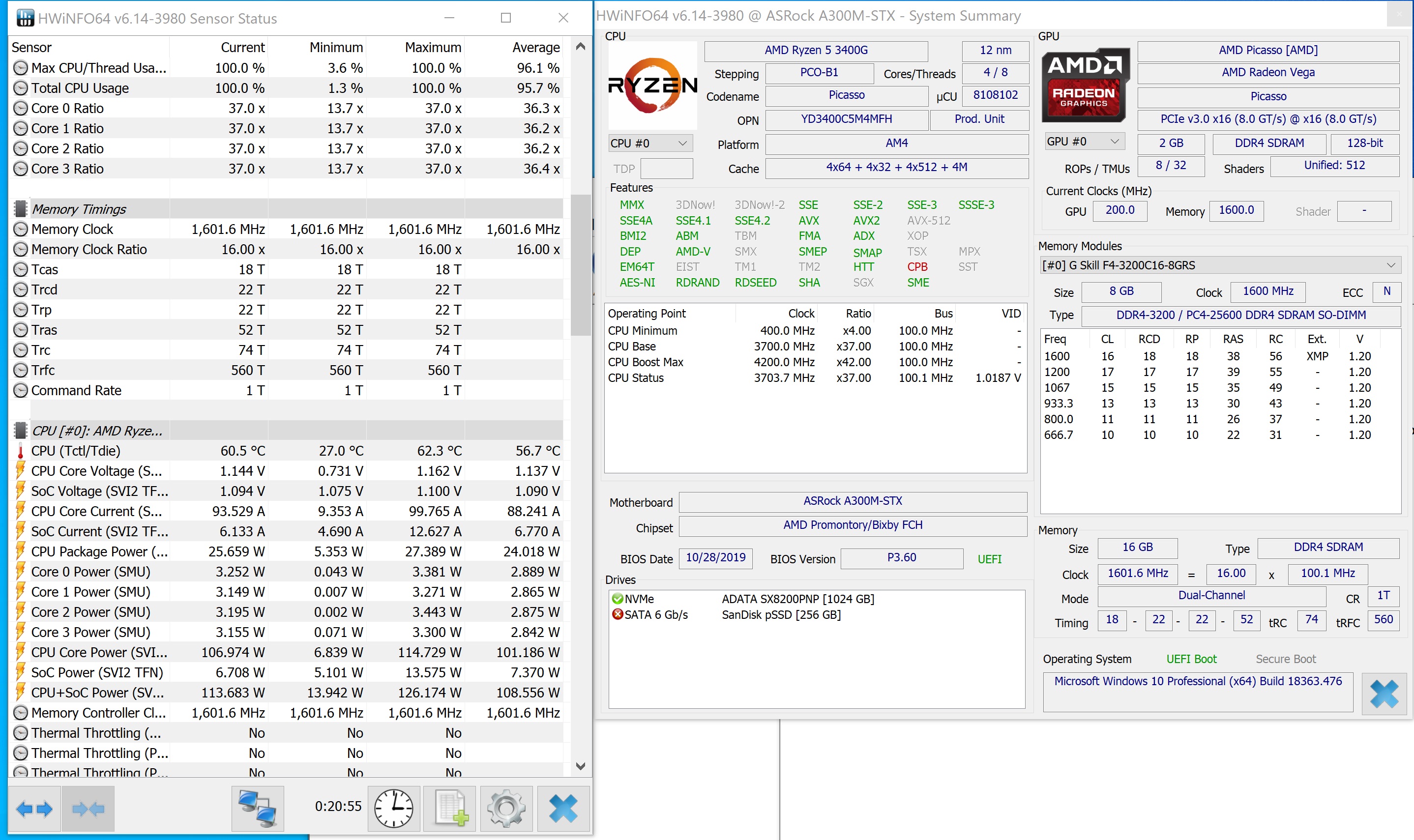 Die Temperaturen bleiben selbst unter Prime95 mit bis zu 90W beim 3200G bei 68Grad. Die 4 Kerne schaffen dann aber nur noch etwa 3,6XGhz. Die Geschwindigkeit geht bei mir scheinbar ab 58Grad etwas runter. Sonst schafft die CPU so die 3,70Ghz auf allen vier Kernen.