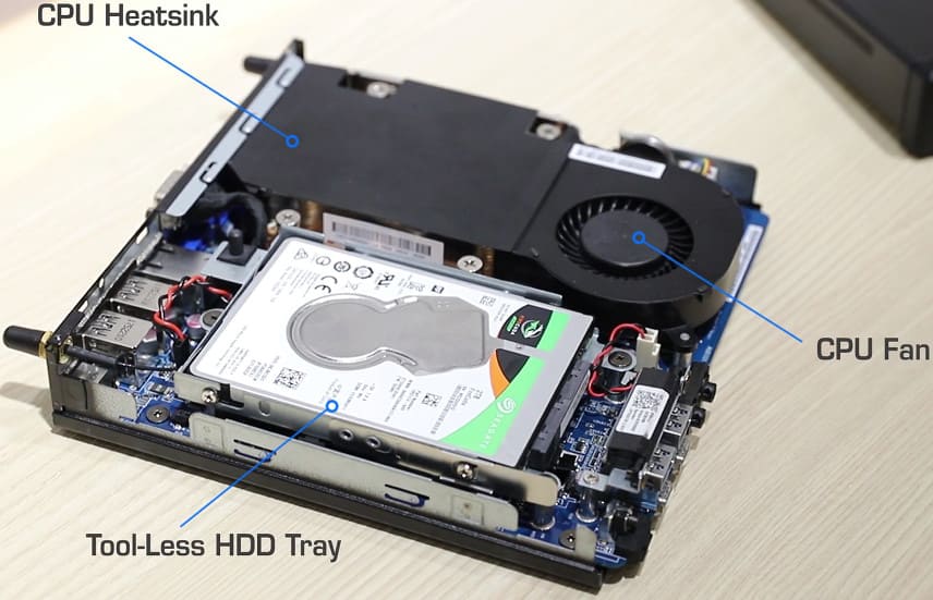 Nehmen wir mal an, dem Kunden wird tatsächlich wie beim Deskmini die Freiheit gelassen, auch eine 65W APU einbauen zu können. Damit hat die kleine in Notebook-Bauweise ausgeführte Heatpipe eine große Aufgabe, die sie wohl eher nicht leise bewältigen können wird. Klar, das Volumen von 1,9 Litern (DeskMini) halbiert sich, aber ich würde nicht gegen "halb so groß und doppelt so laut" tauschen wollen.