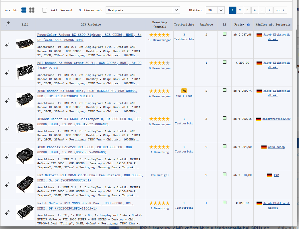 Dort gibt es aktuell nur 2060/3050 oder eine 6600 und das war es dann auch schon.