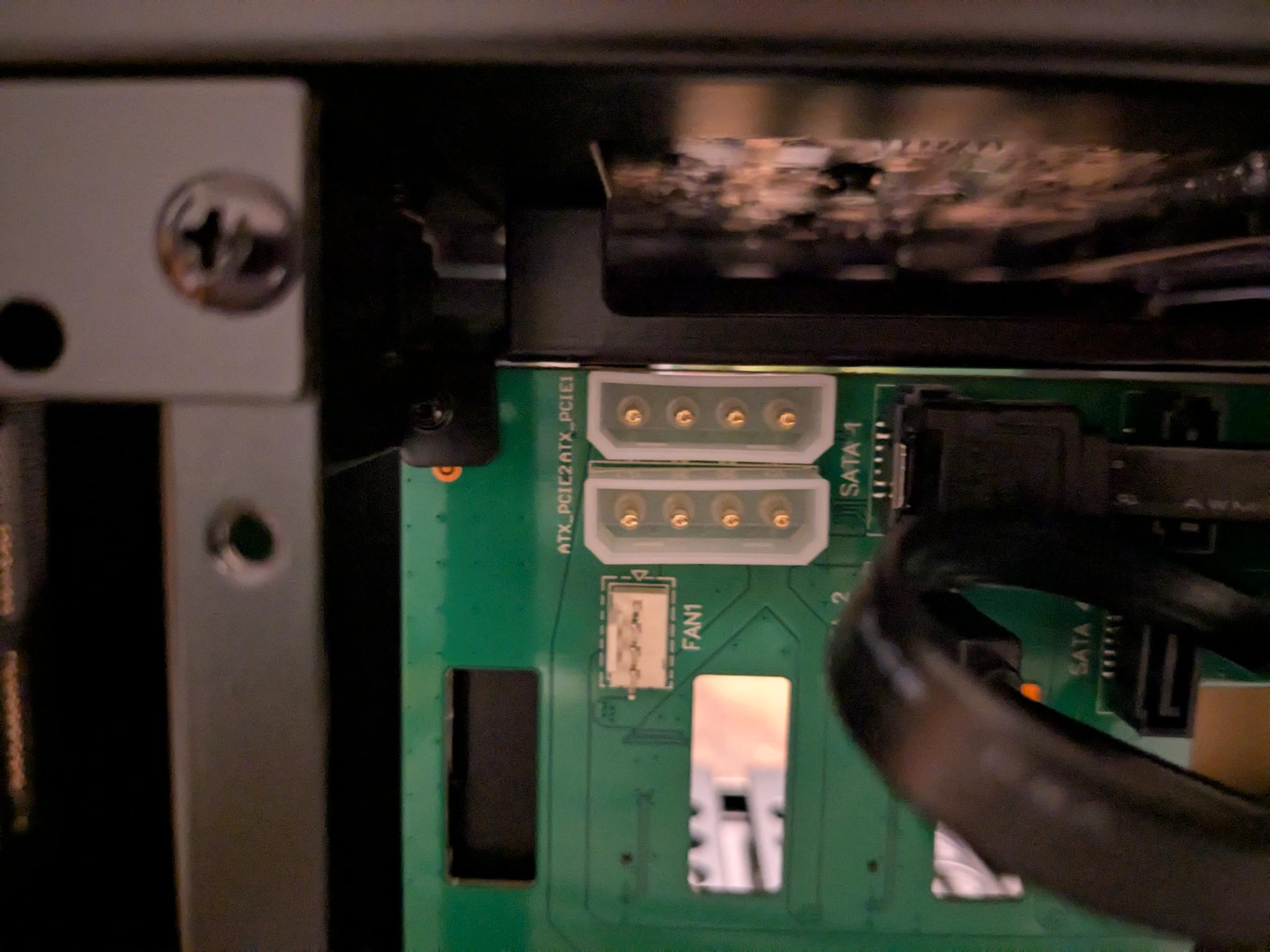 Nun ist mir beim Zusammenbau aufgefallen, dass ich die Stromversorgung der Einbauschächte vom Jonsbo N2 nicht bedienen kann, da hier 2x4-Molex Anshclüsse benötigt werden.