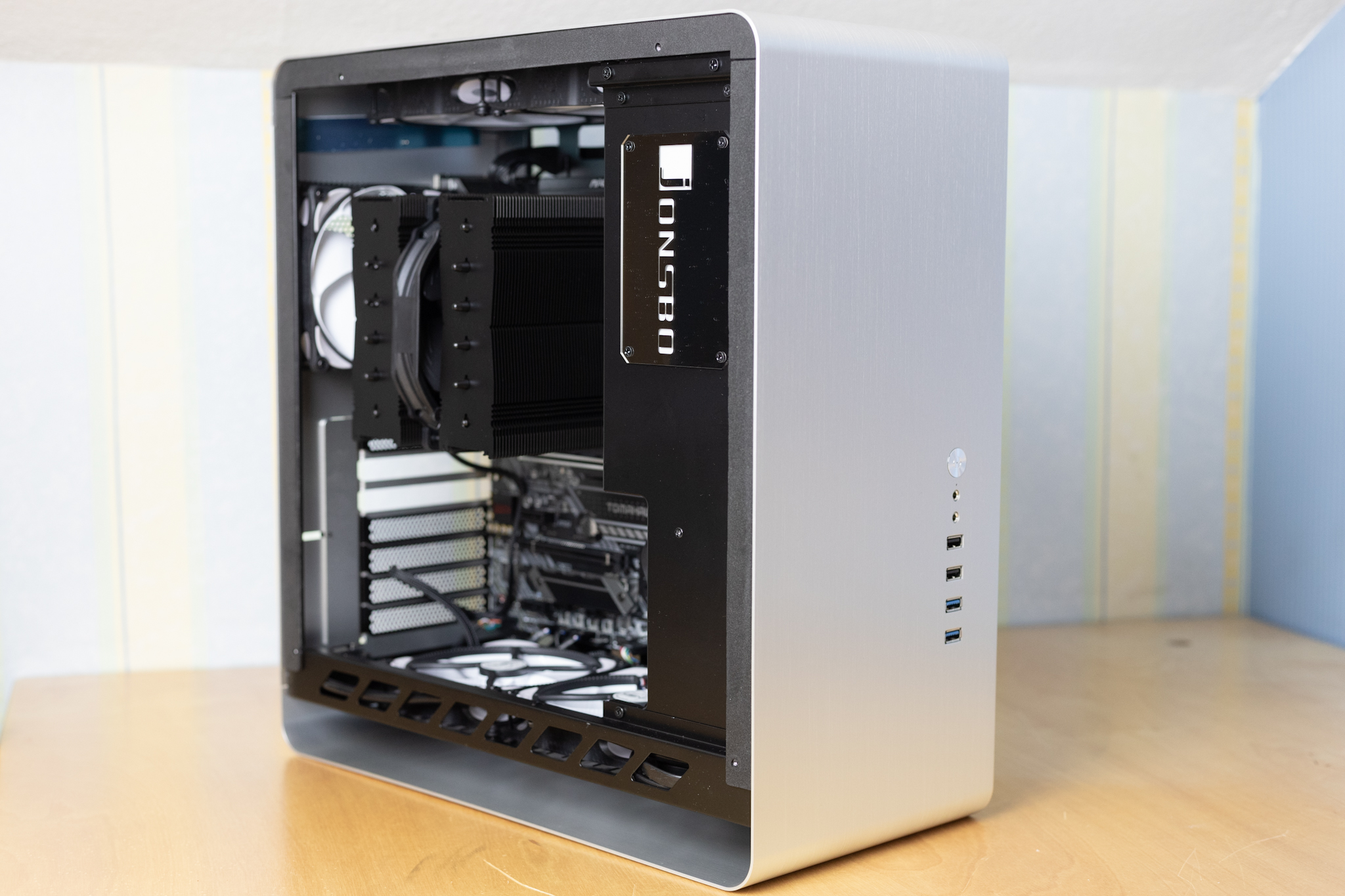 Was ich mal demnächst angehen sollte, ist die Silent Wings vom Boden mit den Lüftern im Deckel zu tauschen. Die RGB-Beleuchtung der Lüfter nutze ich sowieso nicht und Silent Wings sind wahrscheinlich um einiges besser, als die Jonsbo RGB-Lüfter.