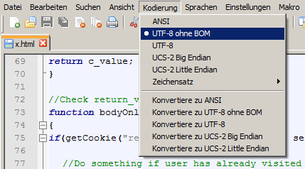 zb. mit Notepad++ erneut abspeichern: