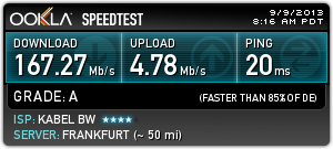 Hmm nett aber nicht atemberaubend, ich hab hier (Rheingau, ~30km nordwestwestlich von Mainz, ländliche Gegend) mit Unitymedia Triple Play 150, allerdings liegen tatsächlich 160-170MBit/sek an. Die paar MBit/sek mehr von Kabel Deutschland finde ich da jetzt nicht so schulterklopfenswert.