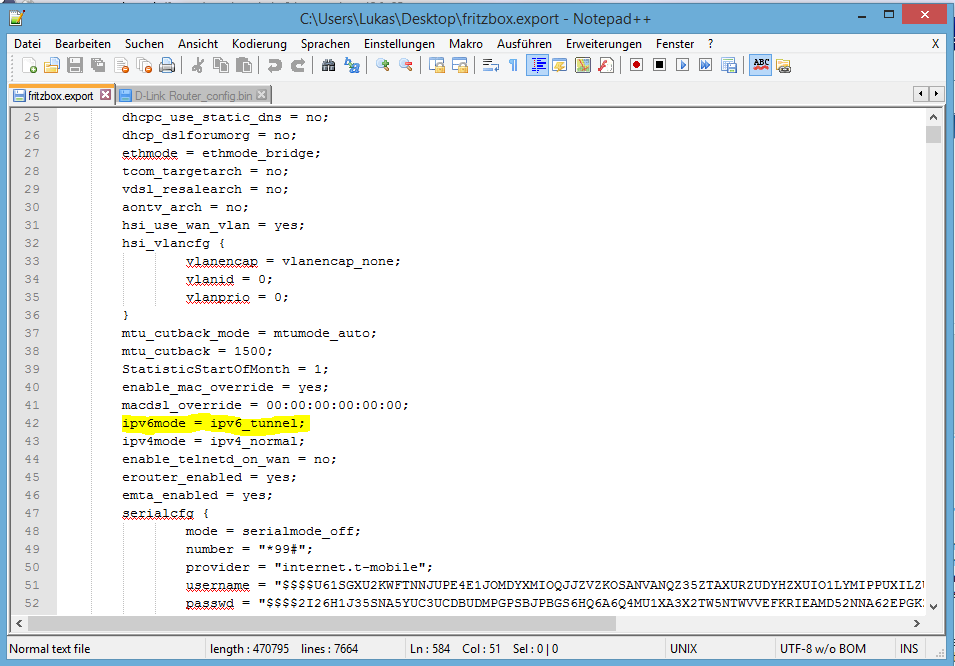Auf die kopierte Datei nun einen Rechtsklick machen und auf "Edit with Notepad++" gehen und den Punkt "ipv6mode" suchen dieser sollte in Zeile 42 sein (kann sich ändern!), wenn nicht dann Strg + F drücken und "ipv6mode" eingeben.