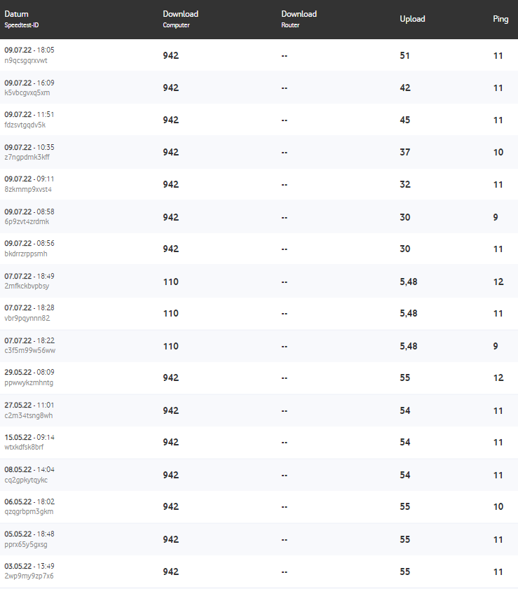 Hatte in den Problemzeiten sehr schwachen und stark schwankenden upload.