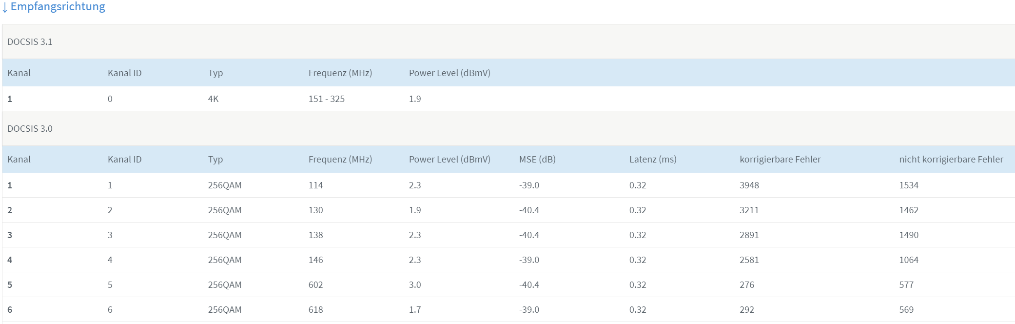 Meine Pegelwerte sehen, wenn ich das mit Daten aus verschiedensten Foren vergleiche auch nicht schlecht aus. (Siehe Screenshots) Was mir aber aufgefallen ist das ich im Allgemeinen viele Fehler sowohl korrigierbar und unkorrigierbar habe.