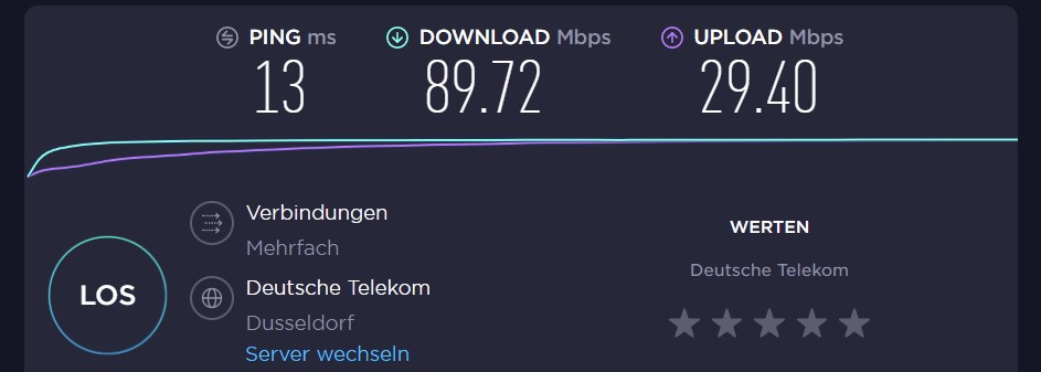 Hier ist die Download und Uploadrate ideal, jedoch ist der Ping bzw die Latenz das Problem.