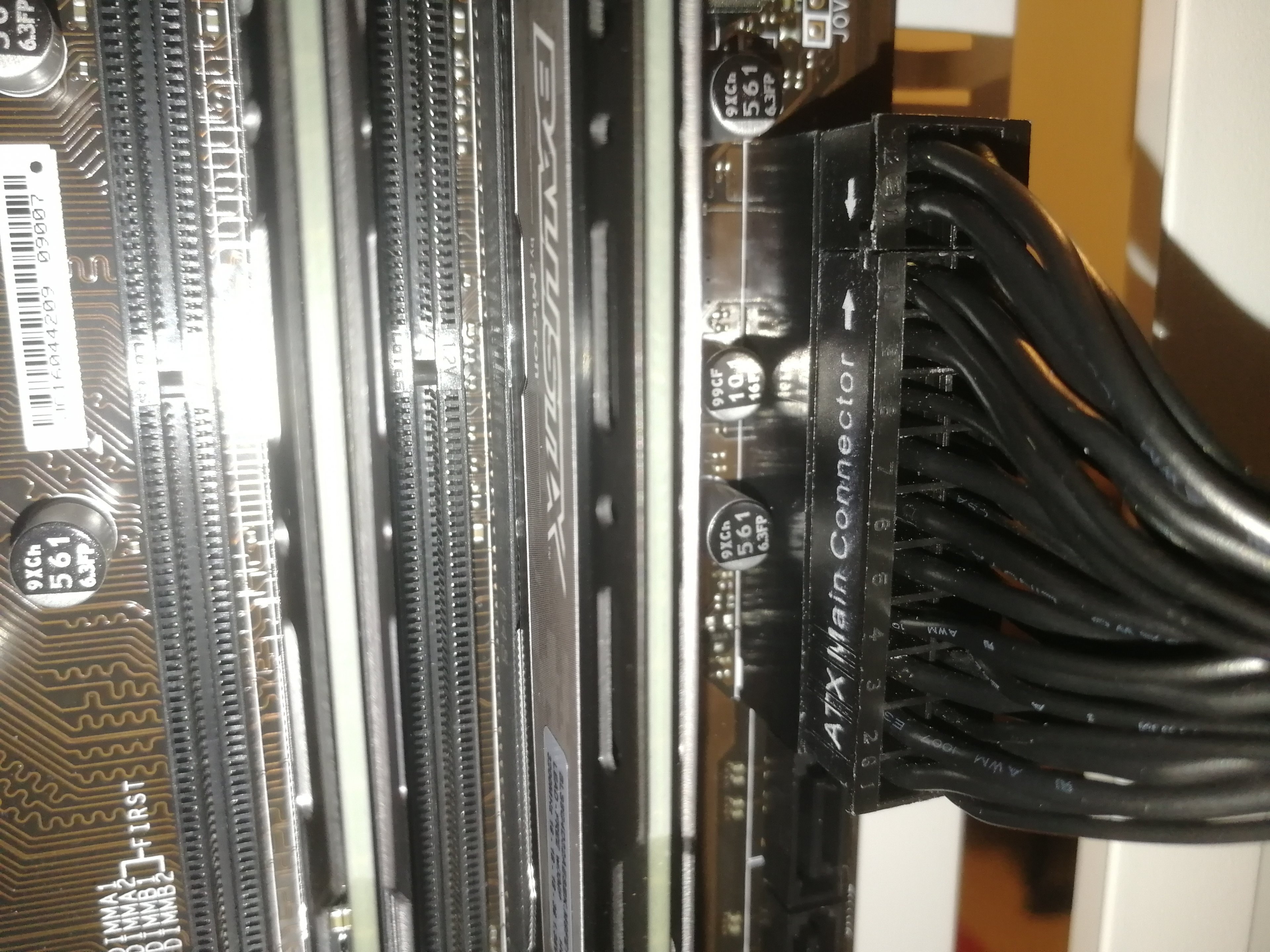 Starte das System auch mal mit nur einem RAM-Modul in Slot "A2" (zweiter von links),