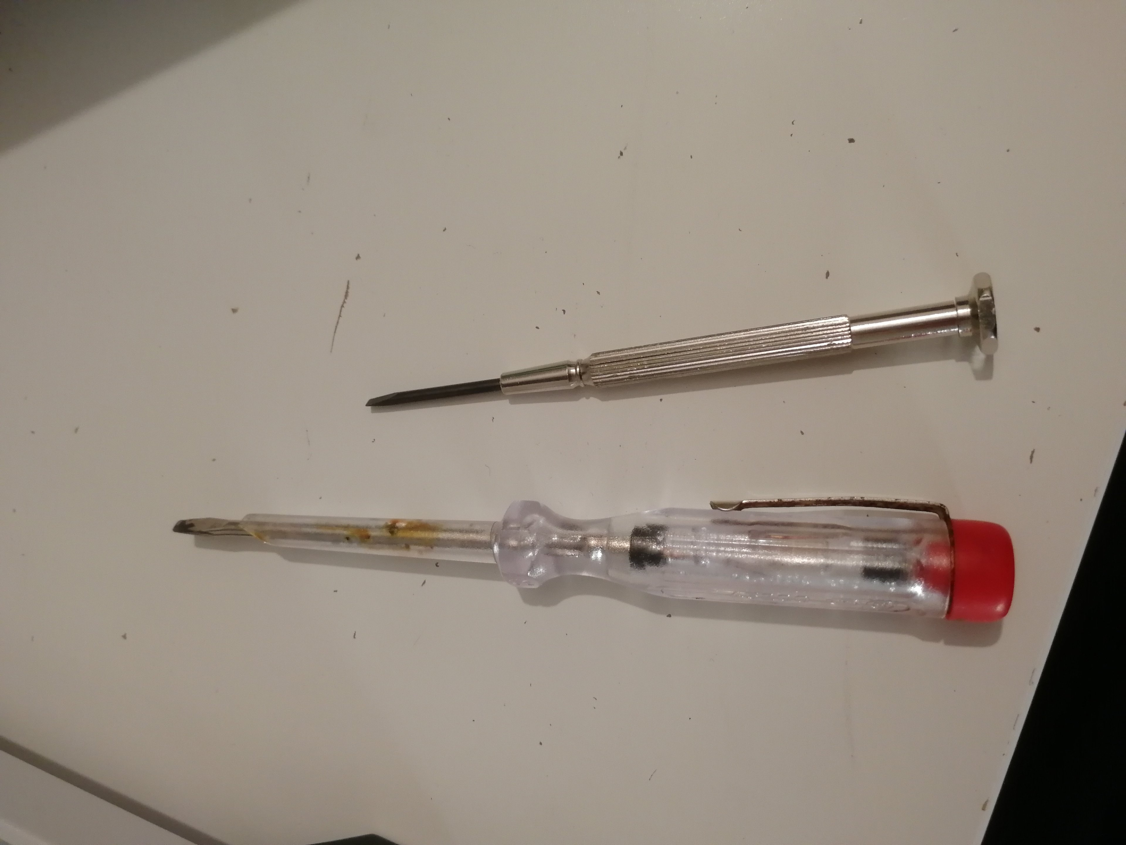 So ich habe jetzt alles ausgebaut und das Mainboard nur mit CPU und CPU-Kühler bestückt, auf den Karton gelegt. Habe die beiden Power-Pins überbrückt, allerdings ist nichts passiert. Unten ist auch nochmal ein Bild von meinem Setup und 2 Schraubenziehern, wobei die Versuche mit beiden Schraubenziehern erfolglos waren.