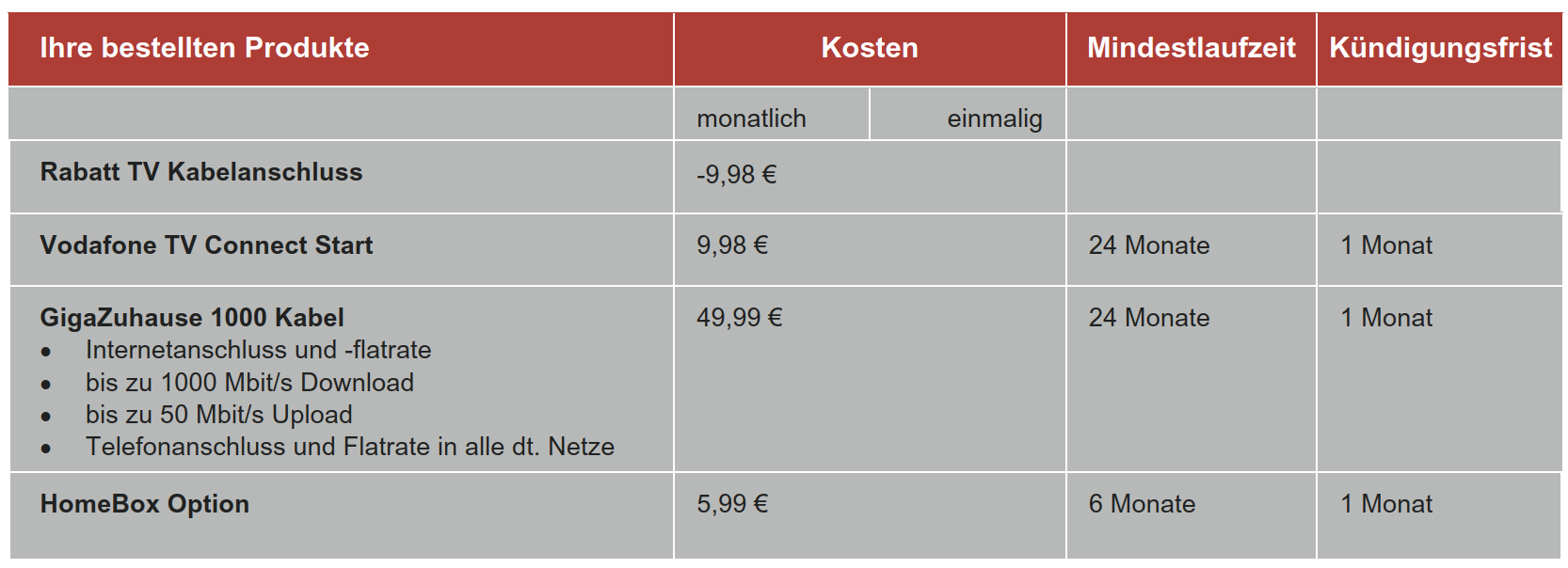 Habe seither den reinen Internet Tarif "Vodafone Cable Max 1000" (also den alten Gigabit Vertrag für damals "dauerhaft 39.99€", aber keine Sorge.. habe mich im Register für Verbandsklagen angemeldet um die 5€ Erhöhung evtl zurück zu holen 😉 )