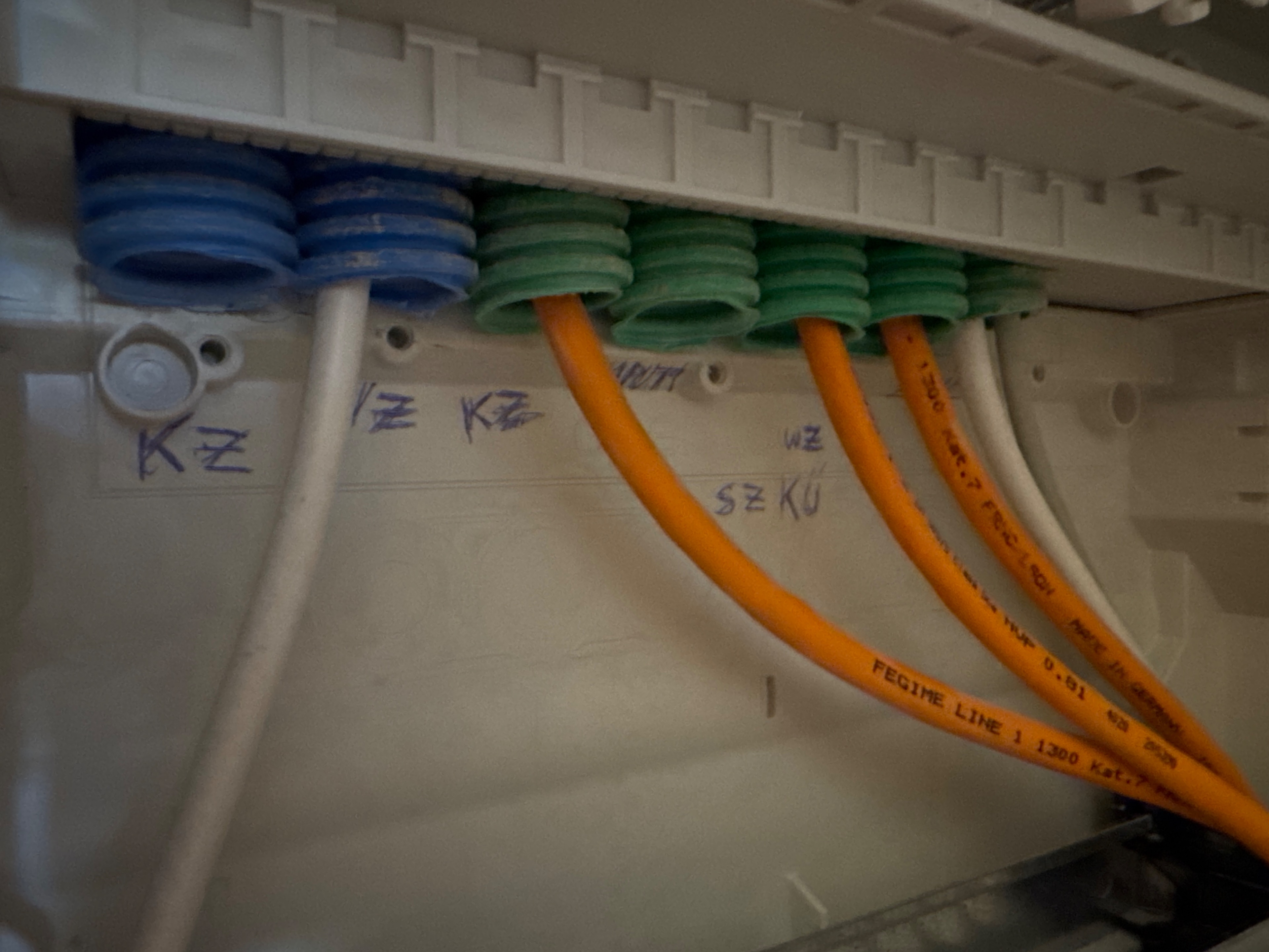 Jetzt war ich beim Nachbarn. Denen hat der Vodafone Techniker einen Splitter gesetzt, damit funktioniert alles wie es soll. Wollte mir den jetzt auch bestellen aber dann fiel mir auf, dass der Nachbar ein zusätzliches Kabel hat, welches bei mir nicht existiert. Bei mir sind quasi nur die beiden blauen miteinander verschraubt.