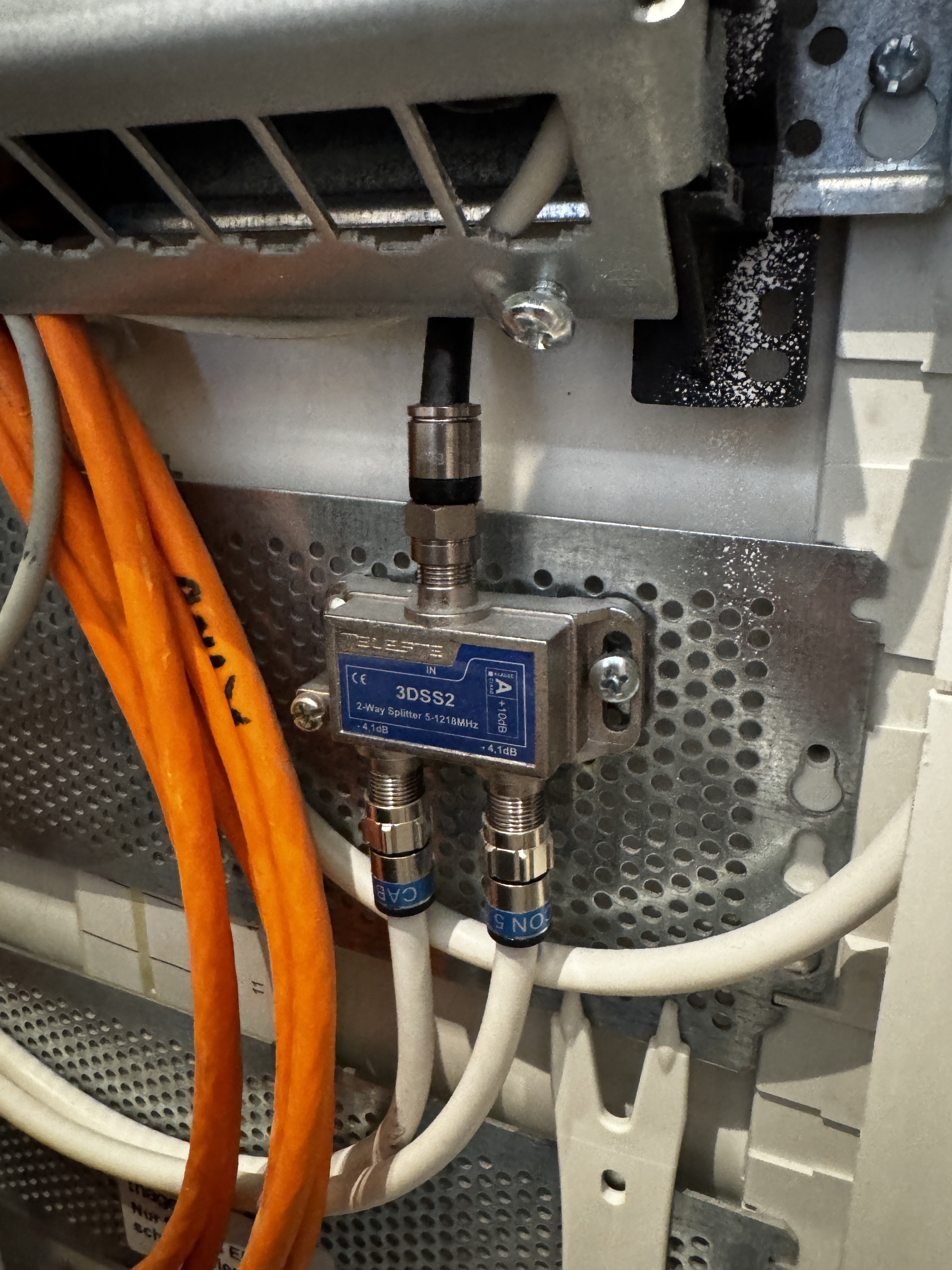 Hat jemand eine Idee wieso bei mir dieses „schwarze“ Kabel fehlt - aber im Prinzip trotzdem alles funktioniert? Bzw weiß jmd ob ich mit so einem Splitter trotzdem noch meinen Router dazwischen quetschen kann?