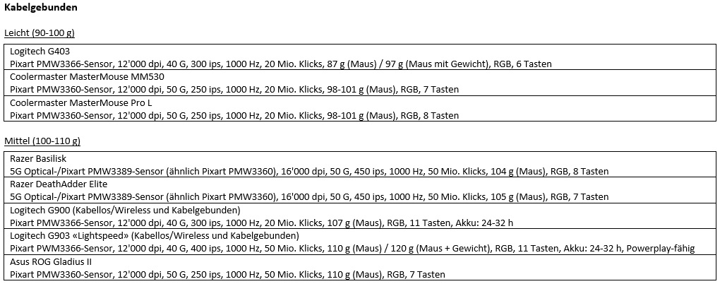 Also da die G403 dabei steht, kann ich die G502 empfehlen die ich selbst im Einsatz habe. Ich habe die Maus nun schon 2,5 Jahre und bin eig wunschlos Glücklich, 4-Wege- Mausrad, guter Sensor, Sleeving ist bis jetzt nicht kaputt, 4 Gewichte je nach geschmack, und was es bei mir noch nicht gab auf wunsch auch RGB.