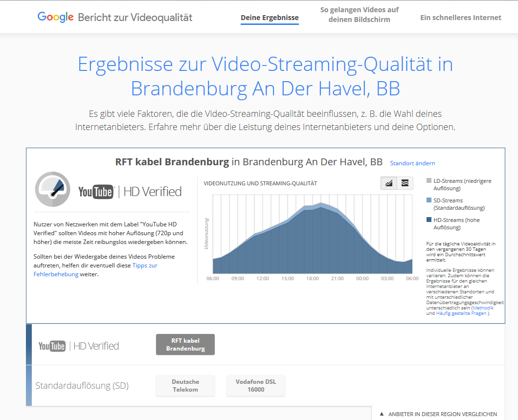 Ich habe seit 11.08.17 einen Zuhause Kabel Surfen und Telefonieren XL Tarif (200/20). Seit Anfang des Jahres kann ich bei YouTube Videos ab dem Nachmittag nicht mehr in 1080p sondern nur noch 480p oder mit viel Glück in 720p anschauen. In den letzten 10 Tagen habe ich das genauer beobachtet und das Problem ist jeden Tag reproduzierbar. Das Problem besteht mit sämtlichen Geräten (PC, Laptop, Handy, Mediaplayer) egal ob direkt mit Ethernetkabel verbunden oder über WLAN.