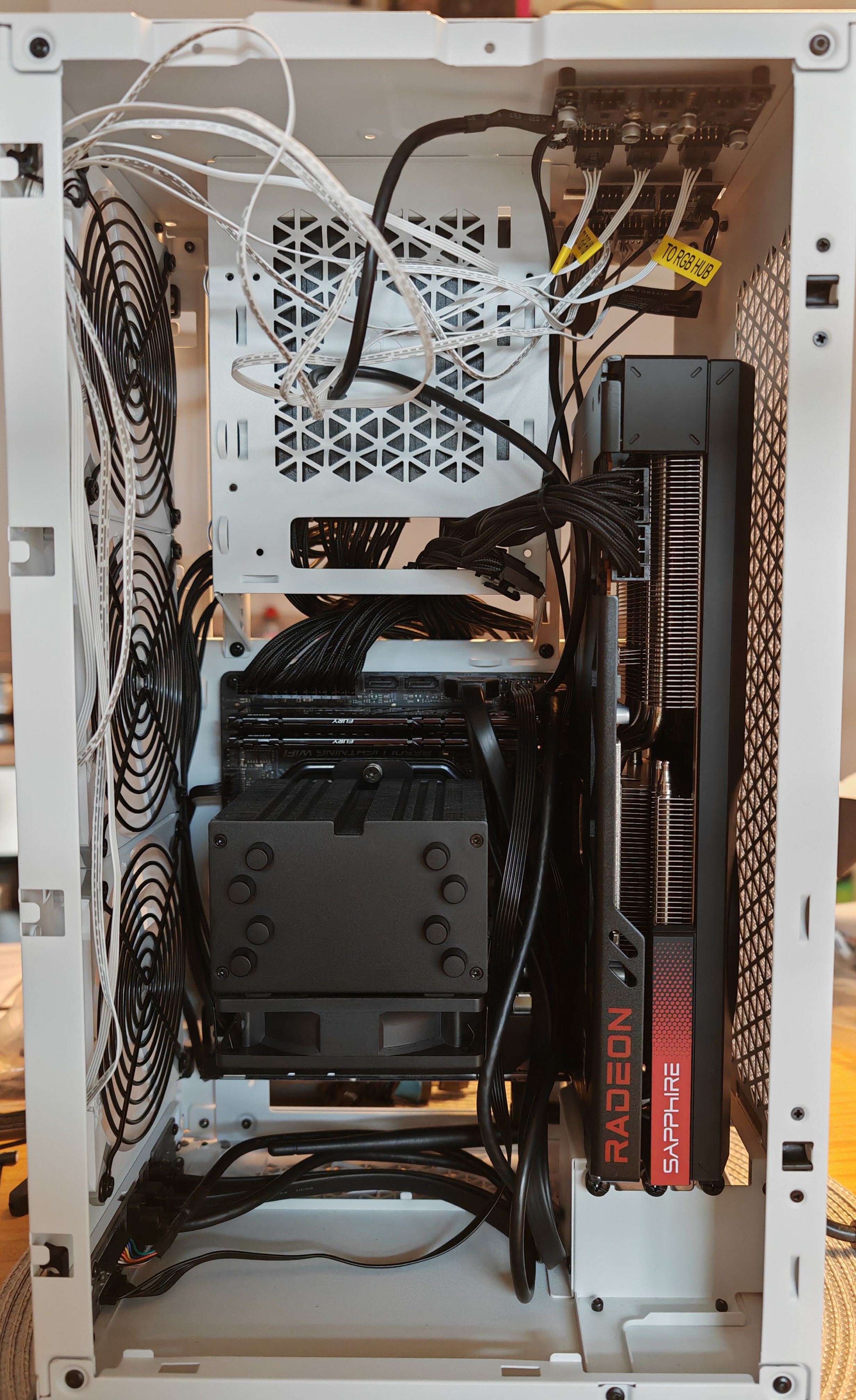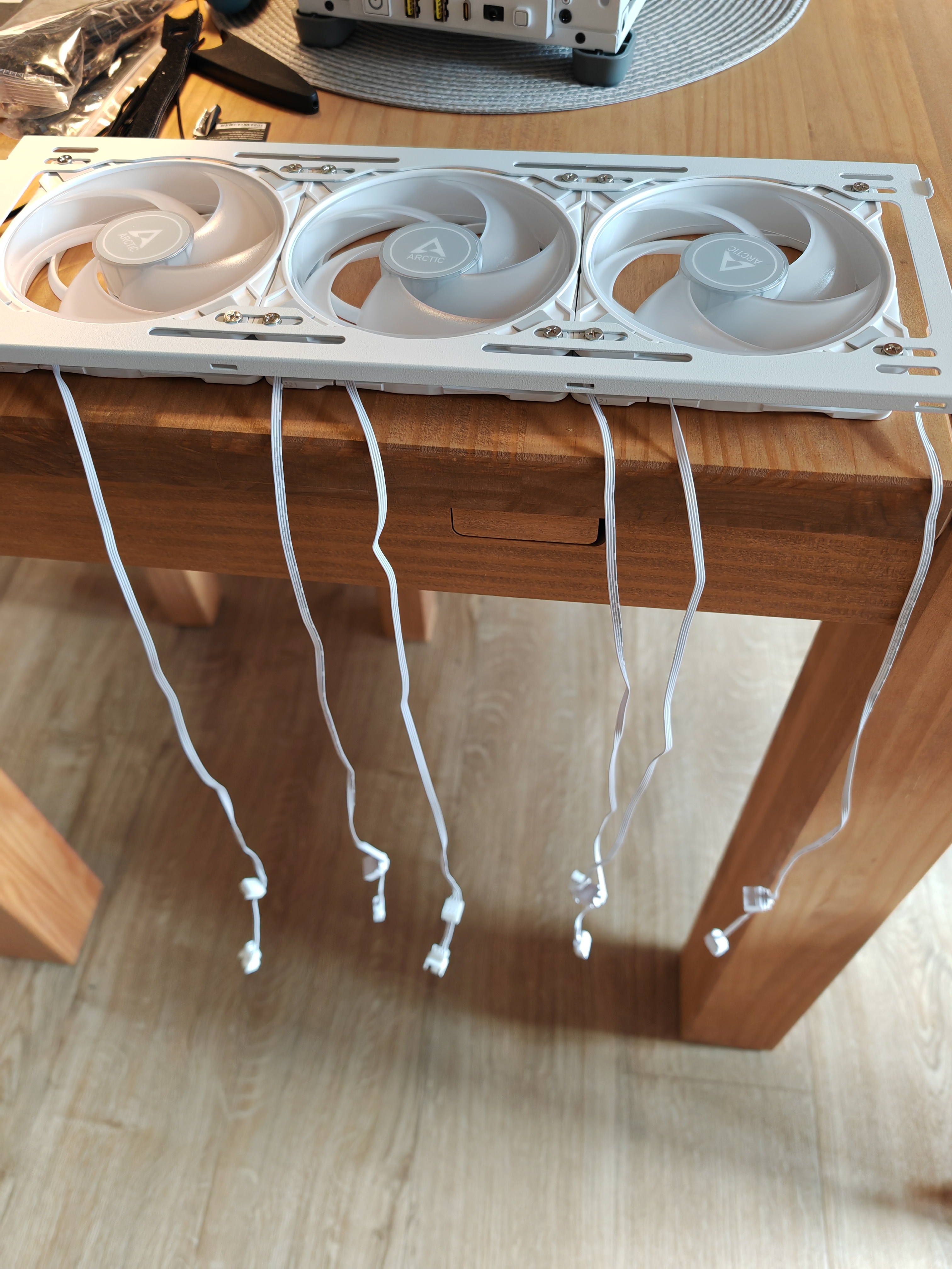 Edit: Macht Kabelmanagement überhaupt Sinn, wenn man am Ende eh nichts davon sieht? Sobald ringsrum die Meshverkleidung drauf ist, sieht man eh nur noch die leuchtenden RBG Lüfter durchschimmern. Ich würde die Kabel halt platzsparend verlegen, damit die Luft sauber fließen kann.