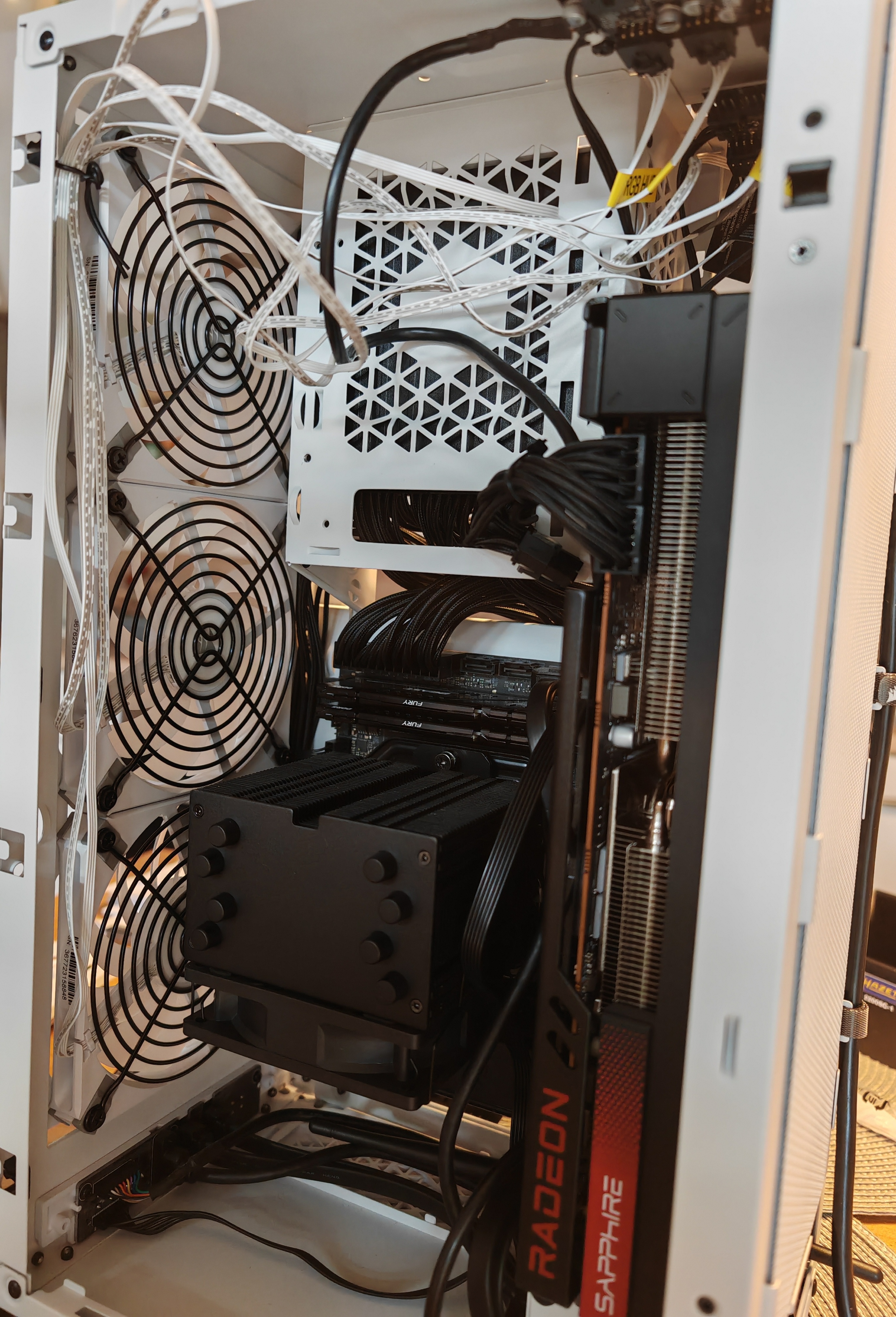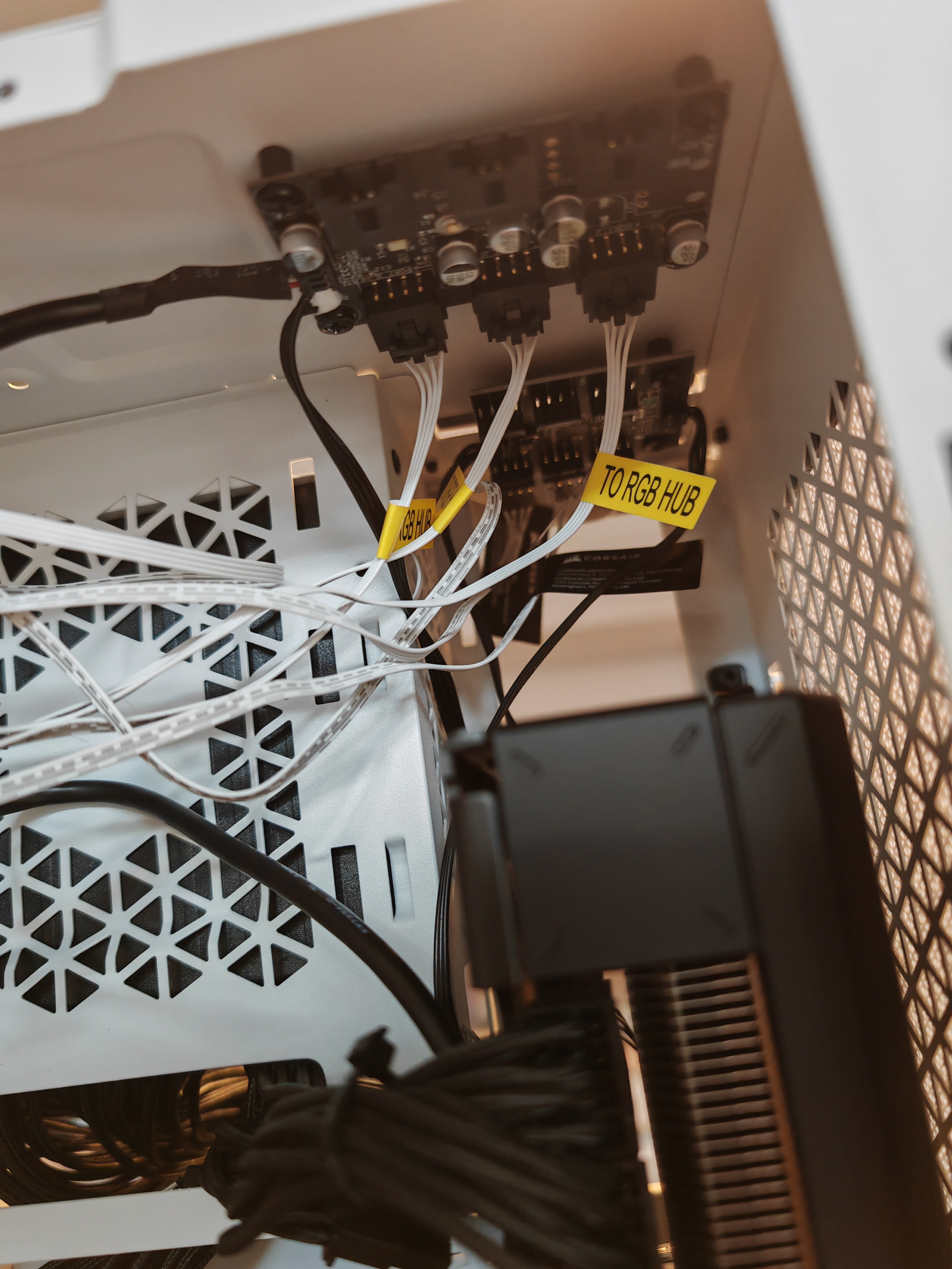 2) Wie würdet ihr, die ihr sicher alle jeder einzeln mehr Erfahrung hat wie ich mit Kabelmanagement, die weißen Kabel der Gehäuselüfter verlegen? Vorne sind drei und hinten seitlich kommen nochmal drei dazu. Bislang klebt oben am Gehäuse der Hub für die Fans und der Hub für die RGBs. Die Hubs dort oben lassen und den weißen Kabelsalat mit Kabelbindern versuchen zu beherrschen, oder die 2 Hubs lieber von oben nach unten ins Gehäuse holen? Da ist ja wie auf den Bildern zu sehen auch noch etwas Platz