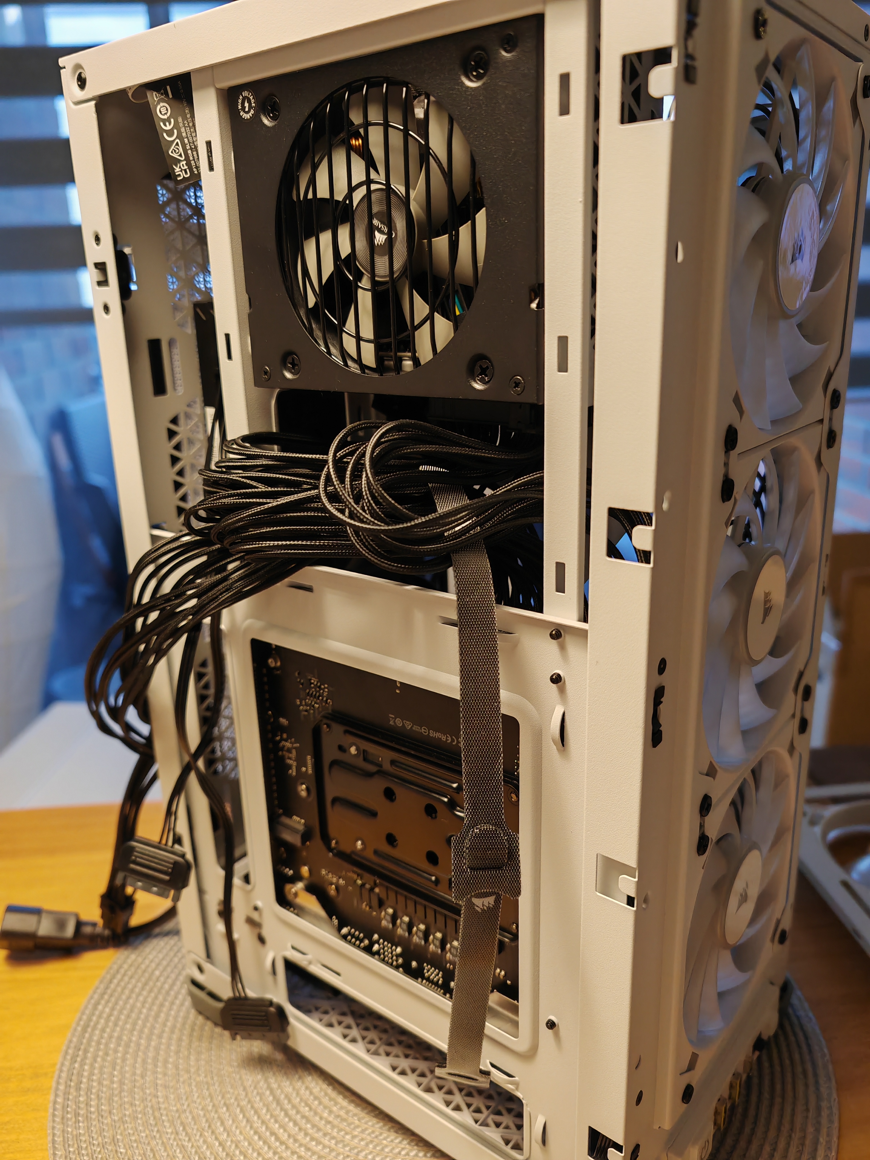 Die vielen schwarzen Sleevekabel vom Netzteil werde ich irgendwie unterhalb des Netzteils hinter dem weißen Gitter verstauen. Mit Kabelbindern usw irgendwie platzsparend zusammendrücken ^^