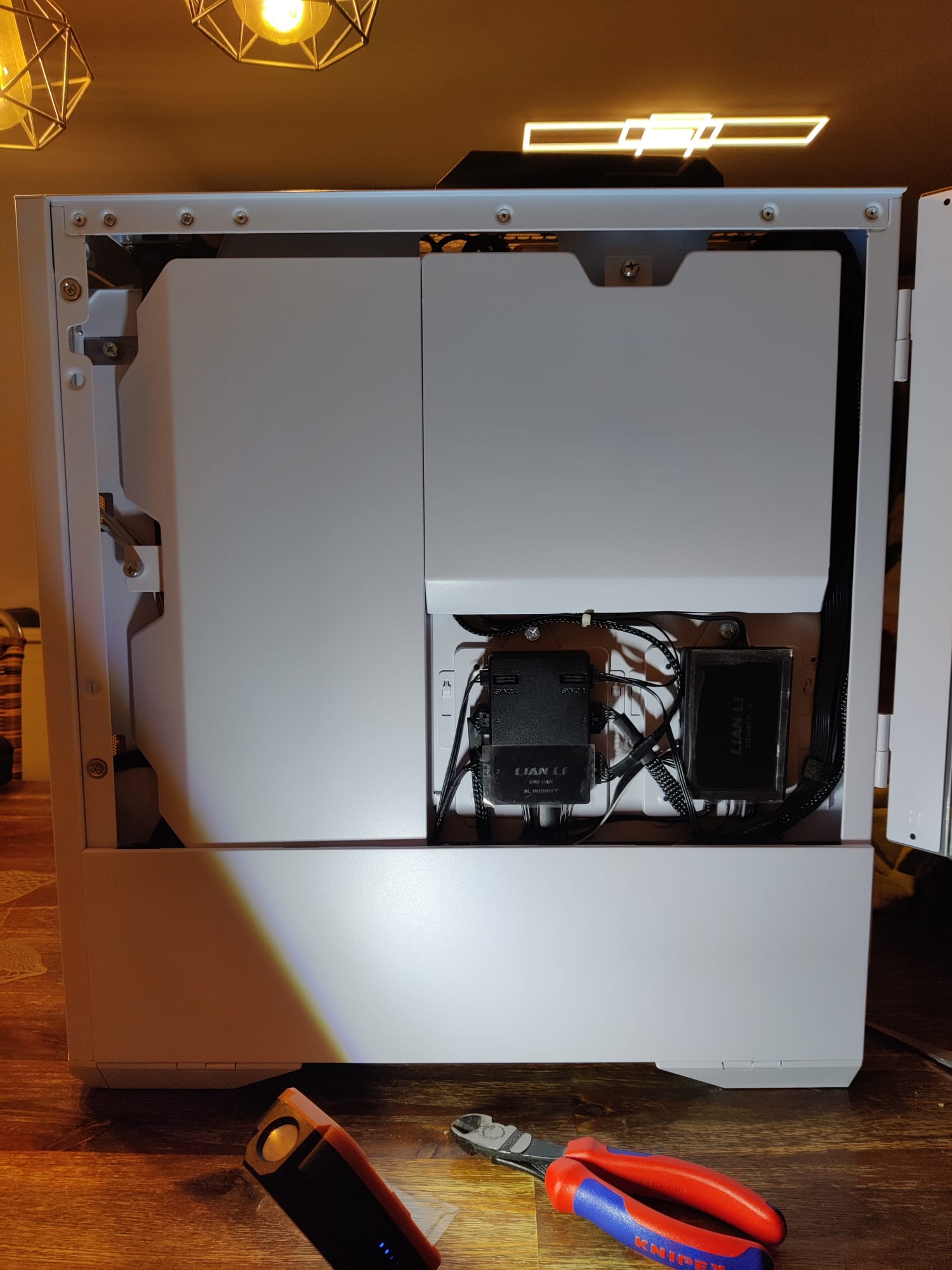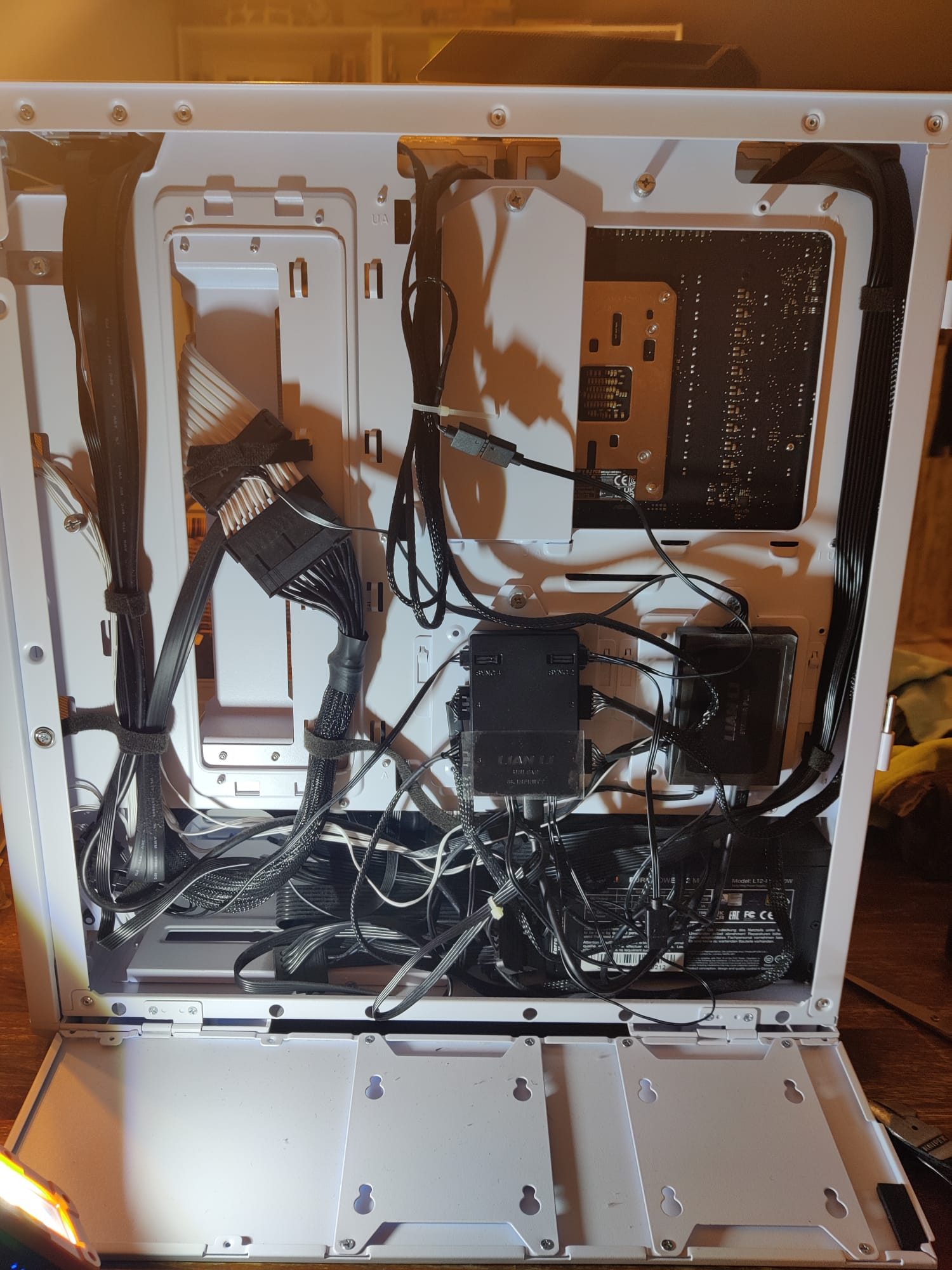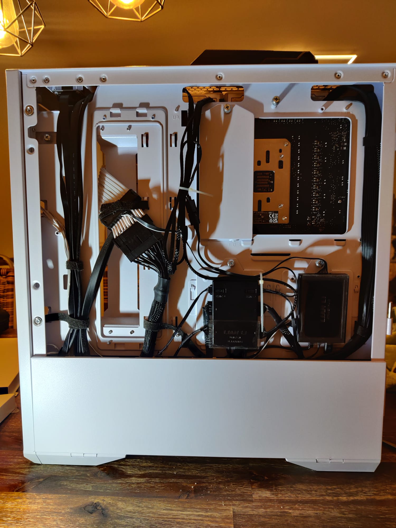 Die ... ich sage jetzt mal stromführenden Kabel die zum Betrieb notwendig sind konnte ich ja halbwegs ansehnlich verlegen, nur mit den überschüssigen Kabeln am Netzteil tat ich mir etwas schwer.