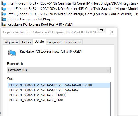 Kaby Lake PCI express Root #10 - A2B1 Code 31