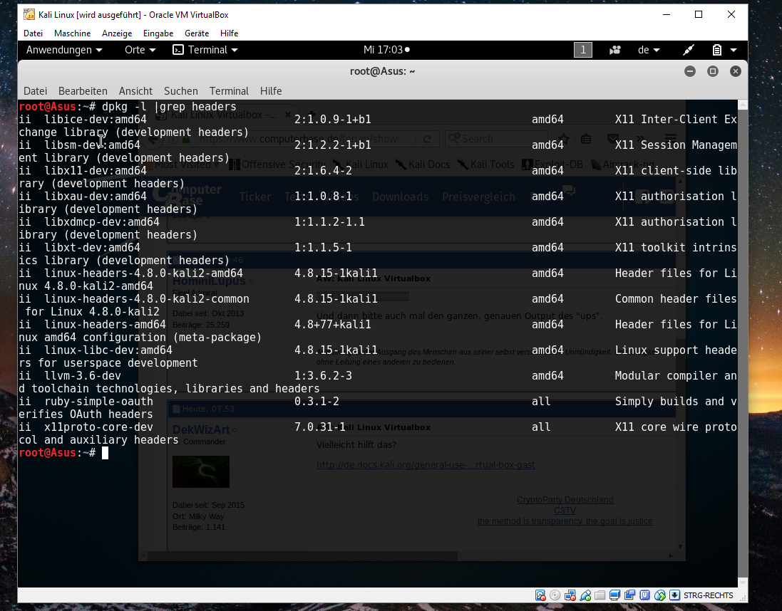 ich kann die Gasterweiterung nicht auf Kali Linux installieren. Wenn ich die Gasterweiterung einlege dann kann ich das zwar ausführen aber es es kommt eine Fehlermeldung mit : Ups! Es gab ein Problem beim Ausführen dieser Software. Das Programm kann nicht gefunden werden.