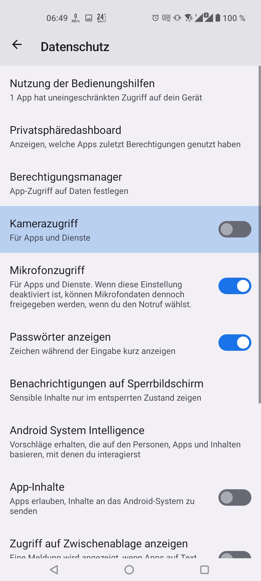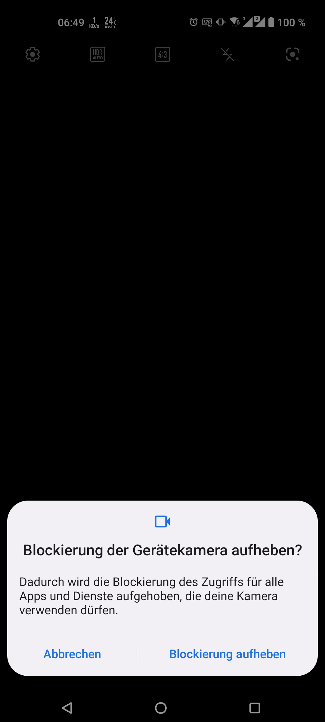 Da wäre normalerweise eigentlich so ein Button um den Kamera Zugriff zu deaktivieren. Bei meinen Gerät in einer früheren LineageOS Version sahen die Buttons noch genauso aus, seit einer Weile sind sie anders, aber auch hier habe ich die Kamera Option: