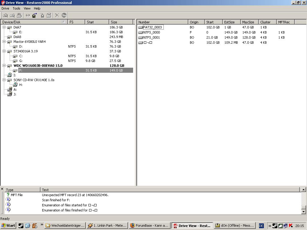 PS: Ich war vorher bei Hardwareluxx aber die konnten mir nicht helfen und dann hat mich Madnex hier rein geschickt, er sagte Fiona wäre hier ein Gosu in Sachen Datenrettung^^