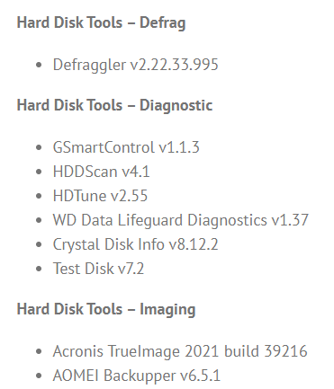 Da sind viele Tools, auch mit Festplattenprüftools drauf.