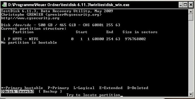 Dateisystem: RAW (?!) hatte glaub vorher NTFS