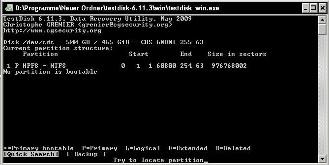 Das sieht soweit o. k. aus, mach doch bitte nochmal eine Analyse und poste die PIC gleich nach Analyse, dann direkt nach Quick Search und wenn dort die Partition nicht gefunden wird auch noch nach Deeper Search und teile wiederum mit was nach p kommt.