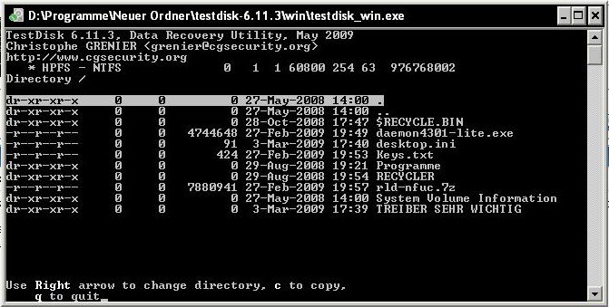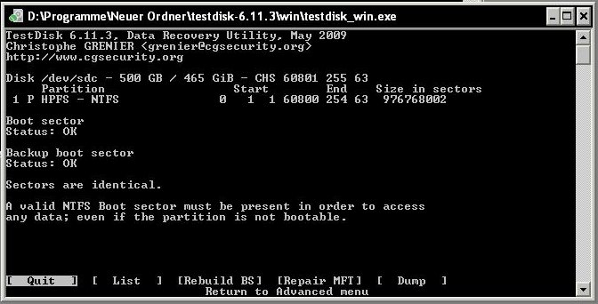 Versuche über das gebootete Betriebsystem auf die Festplatte zuzugreifen