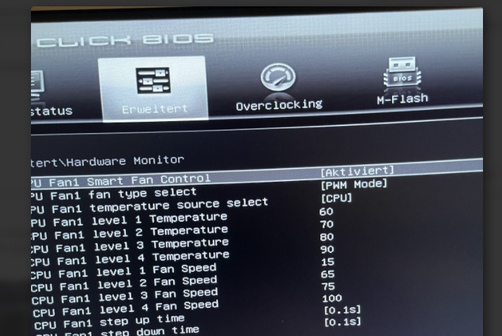 Ob das jetzt lüfterhardwarebedingt ist oder ein bug im uefi? Keine Ahnung, kannste versuchen auszusitzen oder Du probierst mal andere Lüfter, wie die so reagieren..
