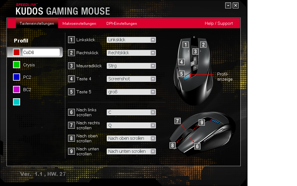 Es hat zwar mal zwischendurch funktioniert, war dann aber noch nicht ganz zufrieden mit der Belegung, wollte weiter machen und dann reagieren die Mausknöpfe einfach nicht beim belegen. Da bleibt nur die Möglichkeit ESC zu drücken.