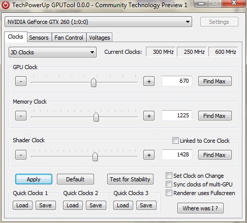 Hab diverse Tools versucht, und nun bin ich beim Riva Tuner angelangt.